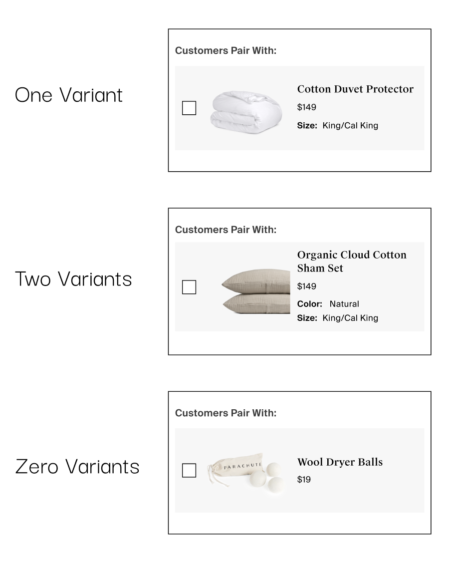 Pairing Examples: Duvet Insert + Duvet Protector, Quilt + Matching Shams, etc.